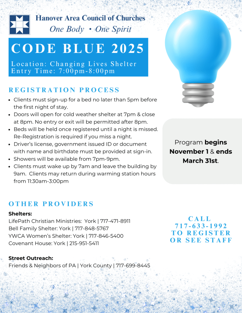 Friends & Neighbors’ Coordinated Street Outreach program is building relationships with and providing services to our unsheltered neighbors in the City of York and surrounding municipalities. Depending on the need, specific services may include physically guiding a neighbor to shelter, helping to make phone calls for benefits and other types of connections, providing bus passes for transportation support in order to return to a safe sheltered place, providing supplies to those choosing to remain outdoors, or those who cannot access shelter space for various reasons.
